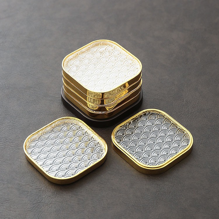 禅意茶杯托ガラス合金茶マット断熱茶托家庭用工夫茶器茶道部品