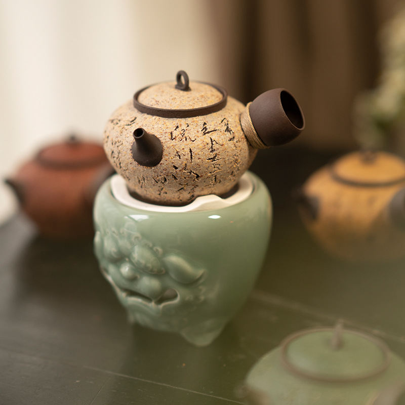 日本式陶泥煮ティーポット炭炉カンフー茶器側に茶筒セット紫砂煮水筒囲炉煮ティーポット