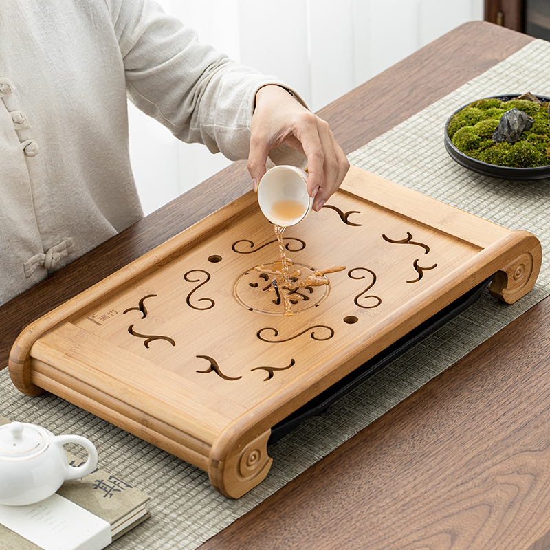 ドライティー皿家庭用工夫茶器トレー竹茶台茶托現代シンプルセット水切り皿小型茶海