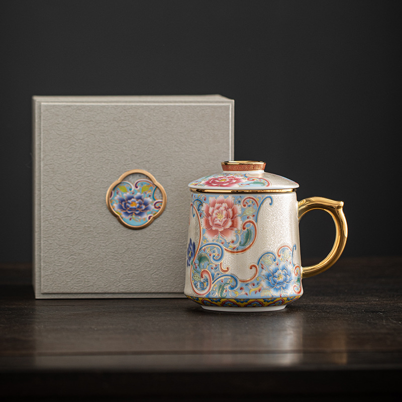 高級純銀絞め糸エナメルカップ個人専用陶磁器茶水分離蓋付きオフィスカップ