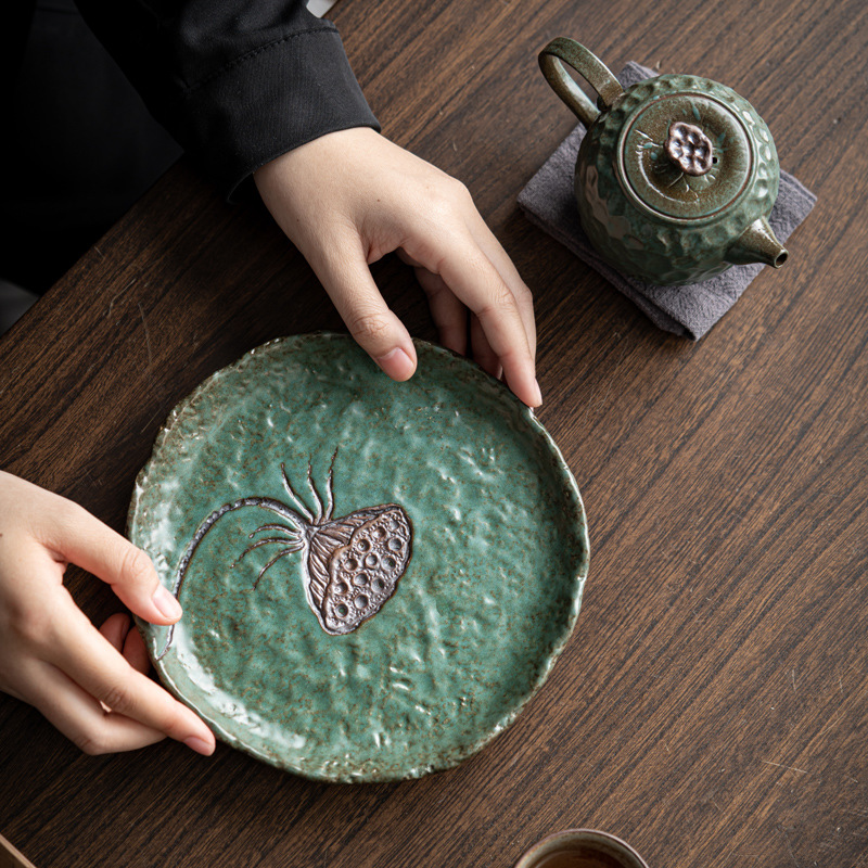 窯変緑壺承乾泡台手作りパレット陶磁器工夫茶器部品日本式レトロ養壺ベース断熱