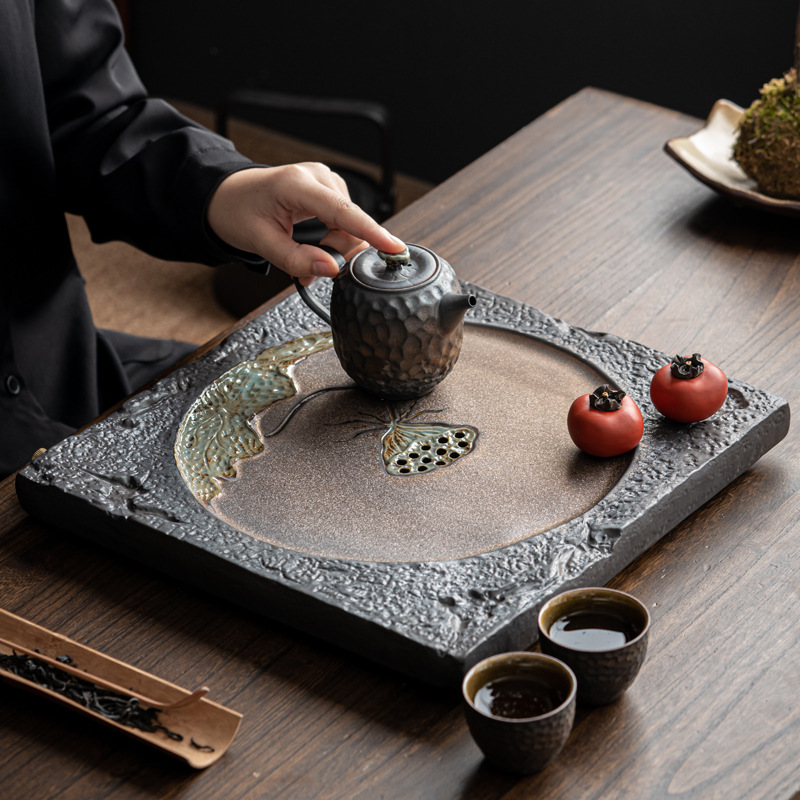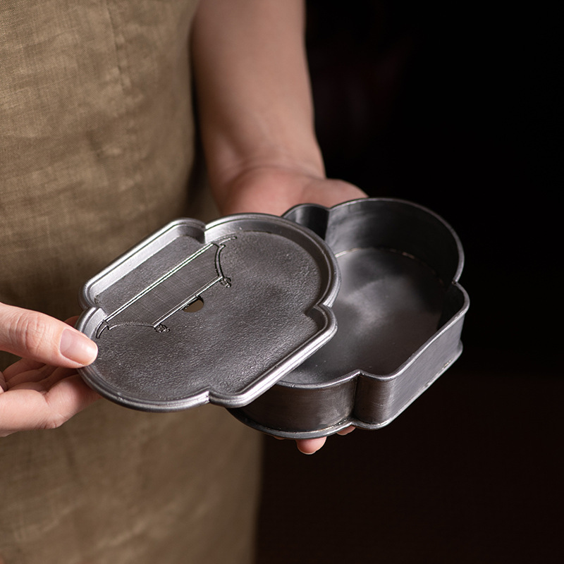 湘妃竹錫製壺承復古手作り茶盤茶海乾泡茶台貯水トレー潮州茶器湘妃
