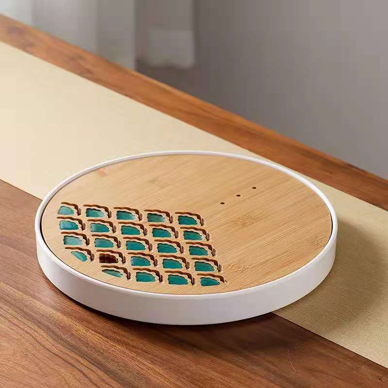 竹製貯水式茶盤日本式メラミン茶海小トレー家庭用工夫茶具トランペット乾泡盤プレゼント