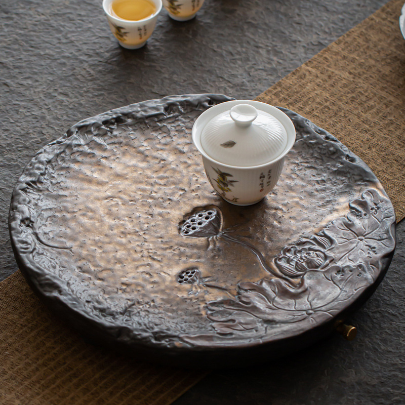 卸売り蓮の花の工夫の茶の皿は排水の陶磁器の円形の禅の意のアイデアのハイエンドのトレーの乾燥している泡のお茶の台の貯水式を持ちます。