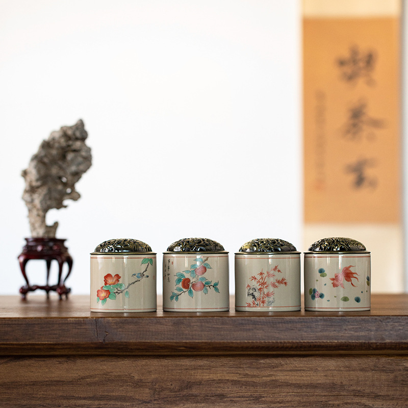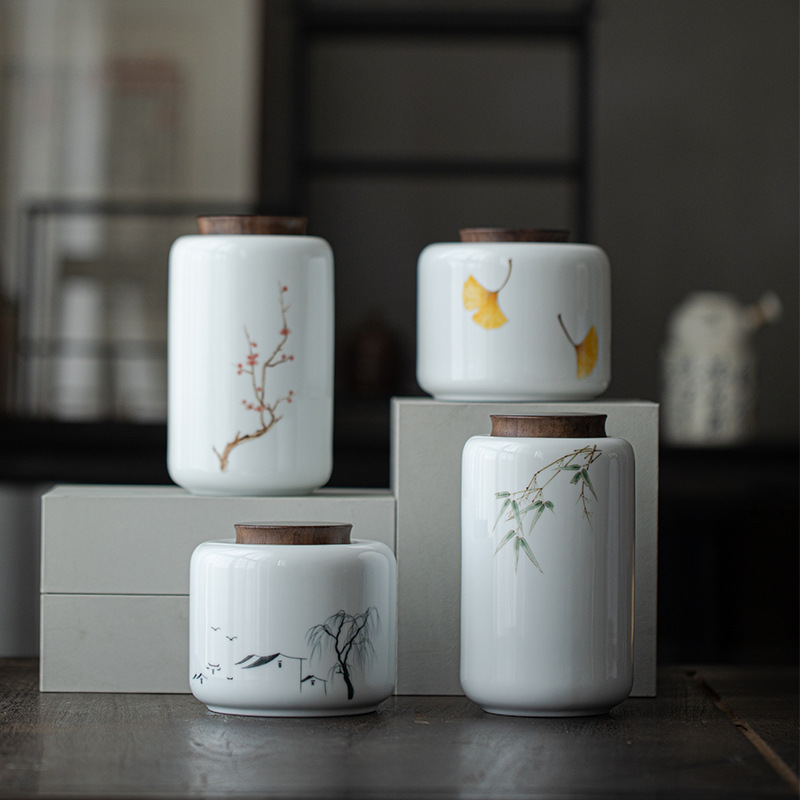 メーカー卸売り手描き陶磁器茶葉缶家庭用プーアル密封缶黒檀木蓋貯蔵防湿缶大サイズ