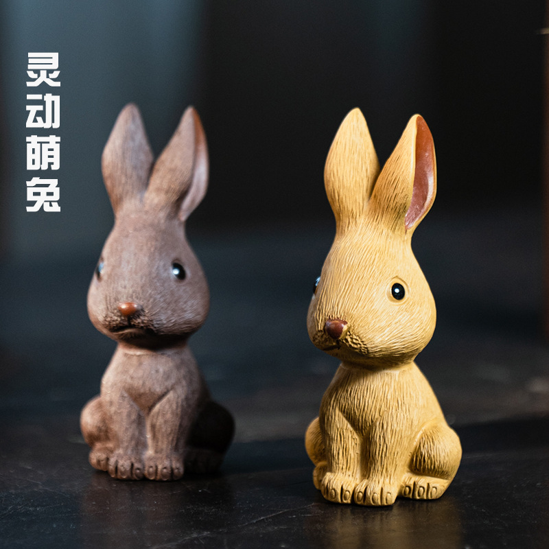 卸売り宜興紫砂茶はウサギの原鉱の手作りの十二生肖の毛の彫刻の茶器の装飾の置物のメーカーをかわいがります。