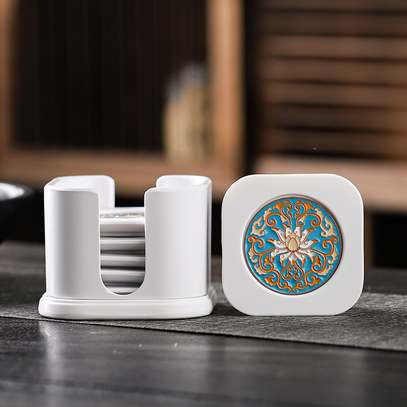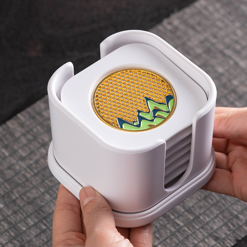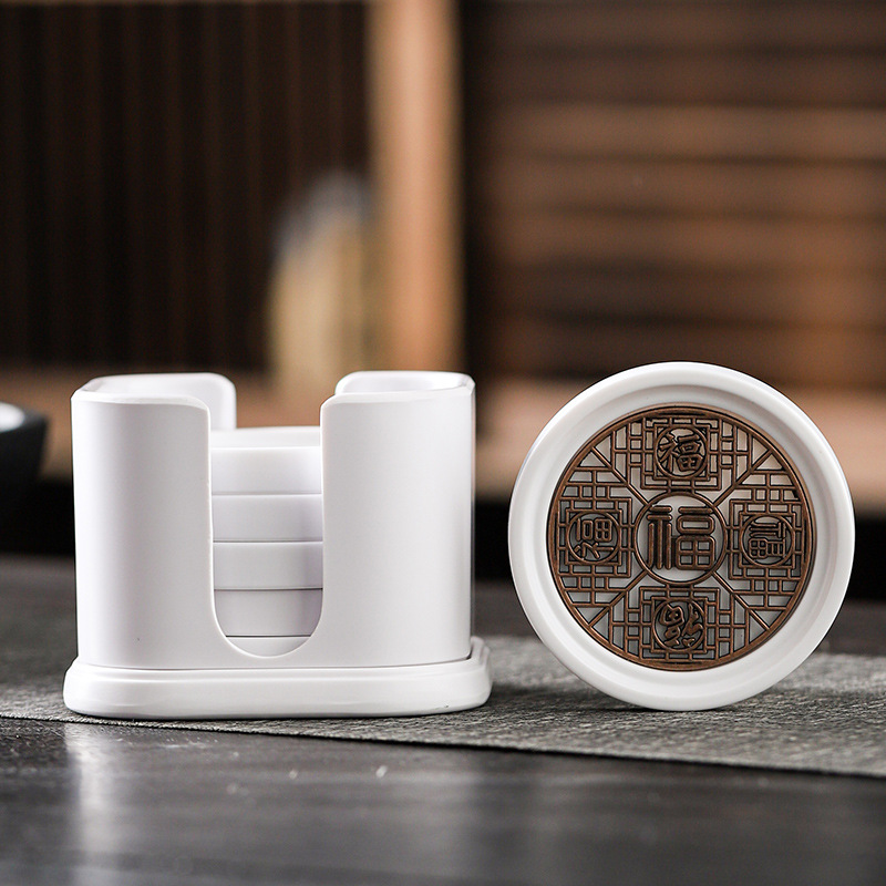 白い吸水コースター収納カップホルダー家庭用創意工夫茶道部品断熱マット