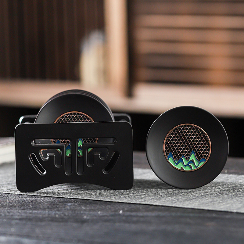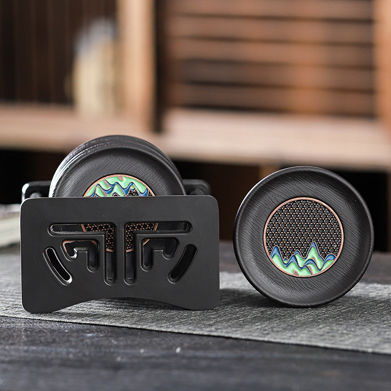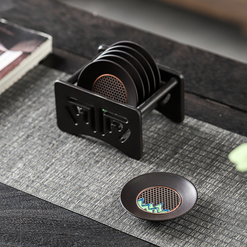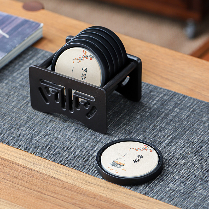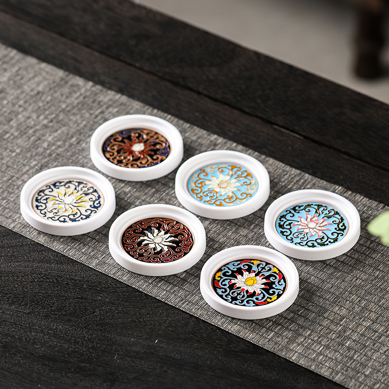 中国式吸水カップマット断熱陶磁器マットクリエイティブ円形工夫茶器部品カップホルダー収納ケース付き