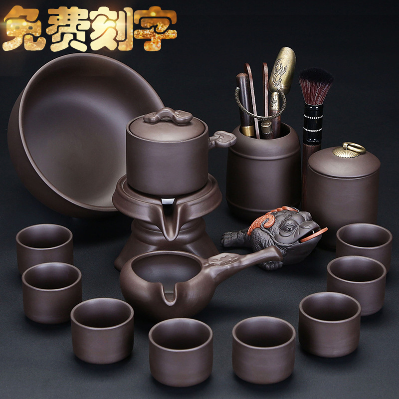 紫砂自動茶器セット家庭用怠け者泡神茶器石臼ティーポット茶盤セット紫砂厚