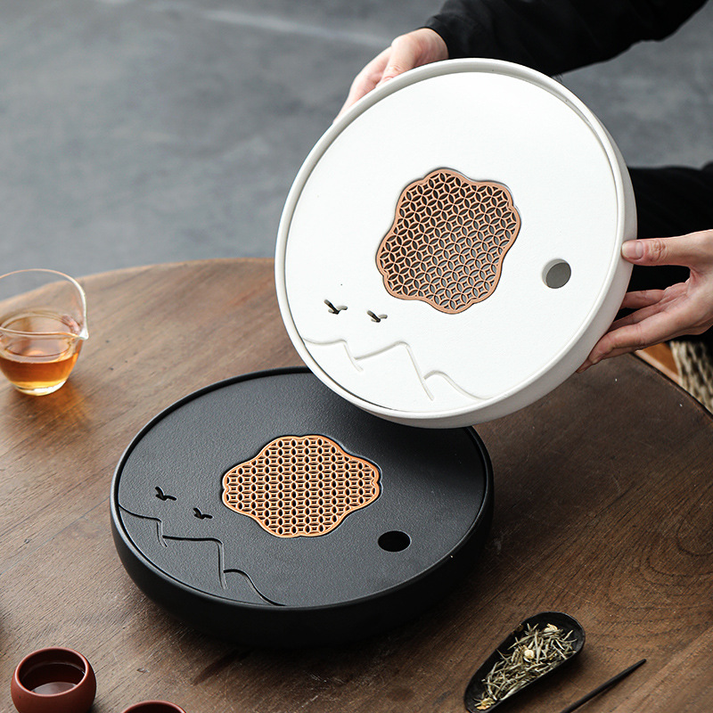 国風吸水乾泡盤茶盤創意速乾夫茶台トレー陶磁器家庭用レトロ乾泡台
