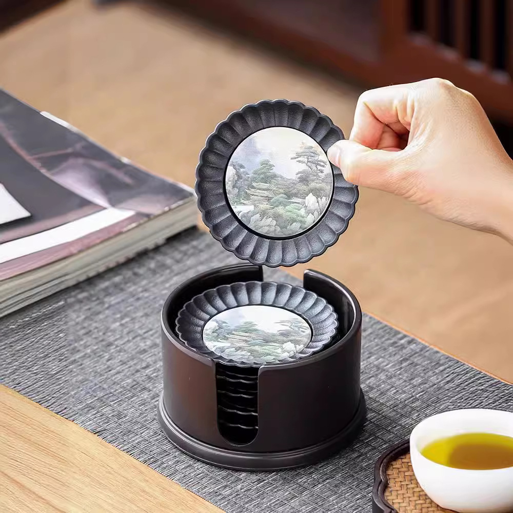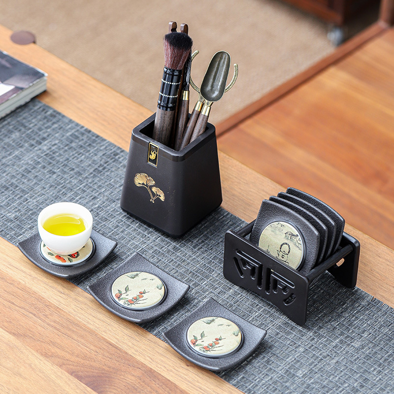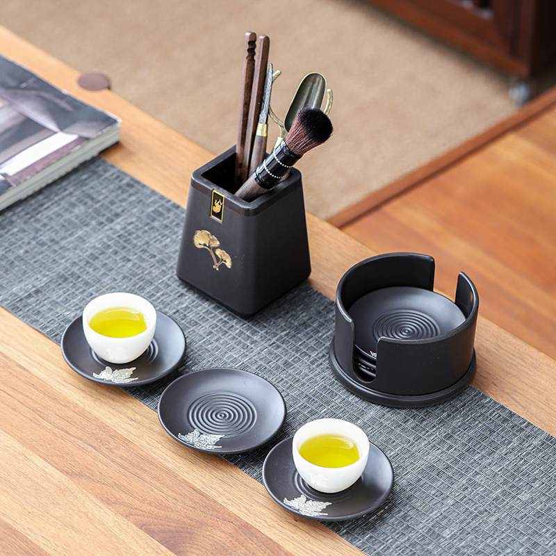 創意工夫茶道茶道茶器部品円形パーマ防止茶杯托日本式吸水陶磁器コースター電気木断熱マット