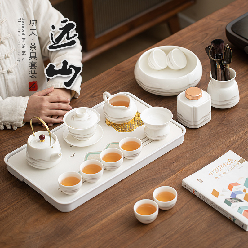 カンフー茶器ティーポットティーポットカップ遠山白磁茶器ティーセットセットシンプル家庭用日本式