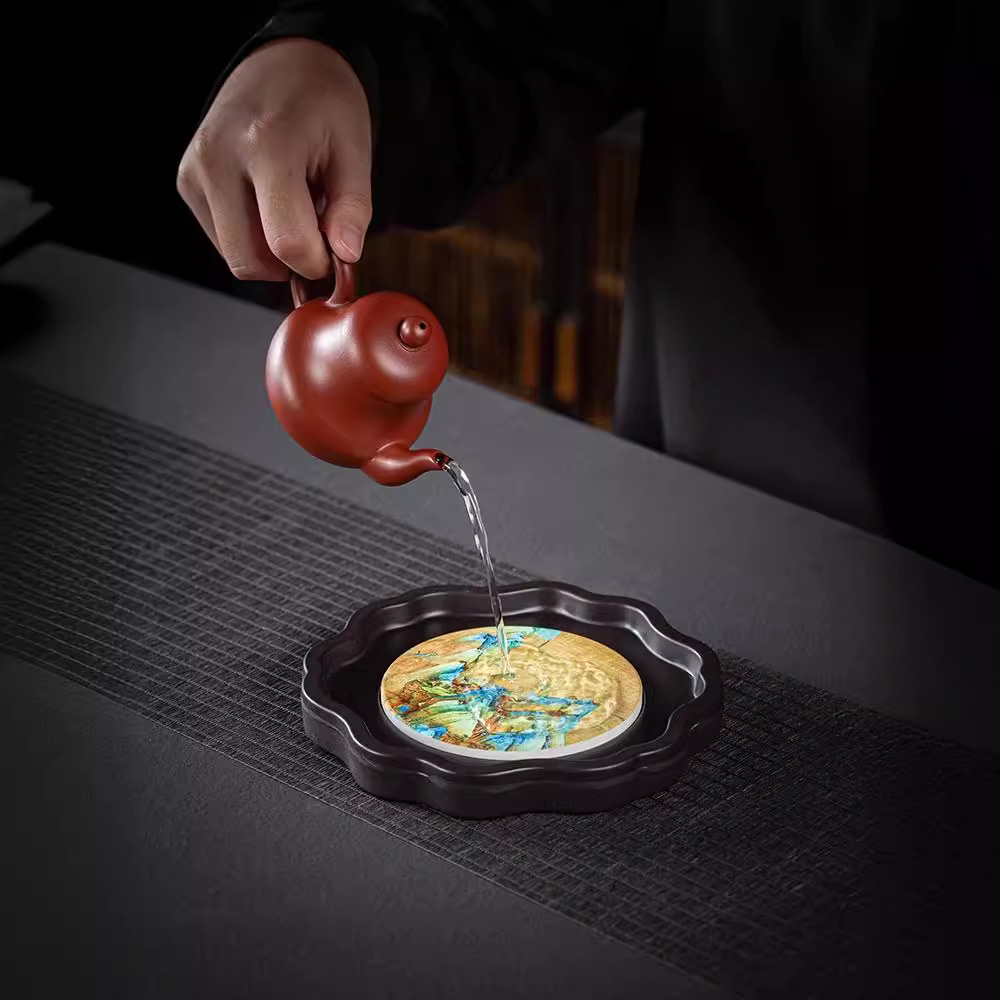 国潮工夫茶道具茶トレー黒陶吸水筒承乾泡台中式速乾小型茶皿