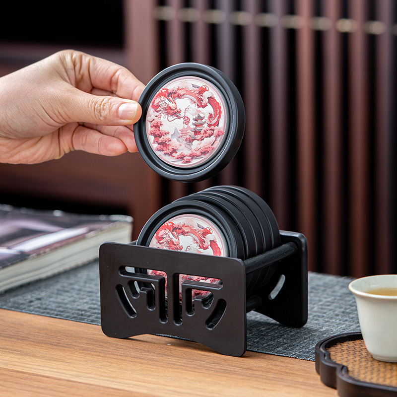 国風文創工夫茶道具茶道茶托中国式電木速乾吸水茶杯陶磁器断熱マットパーマ防止