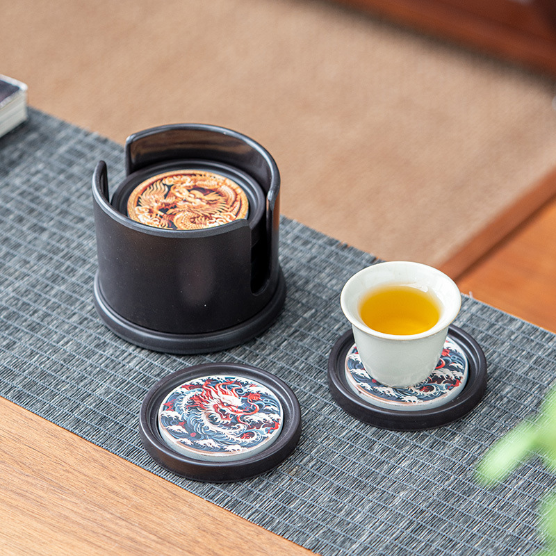 創意中国式国風吸水茶カップマットカンフー茶器部品茶道茶托陶磁器断熱マットパーマ防止
