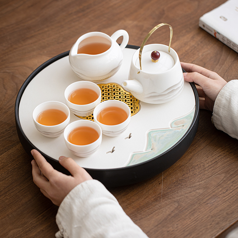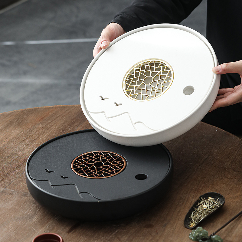 茶皿円形全陶磁器大サイズ貯水式乾泡皿家庭用リビングルーム小型茶皿水切り茶海茶トレー