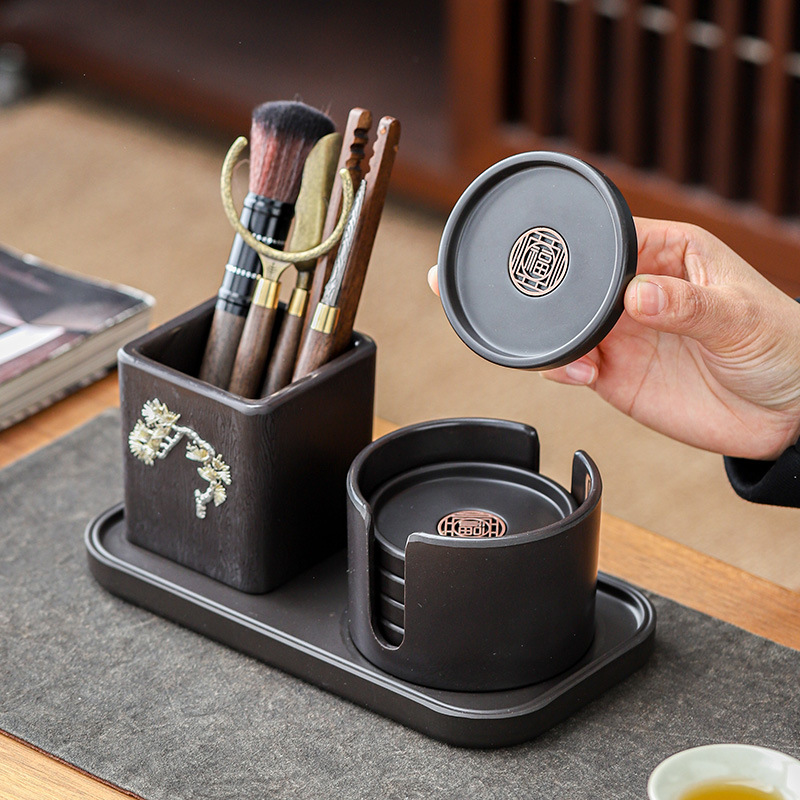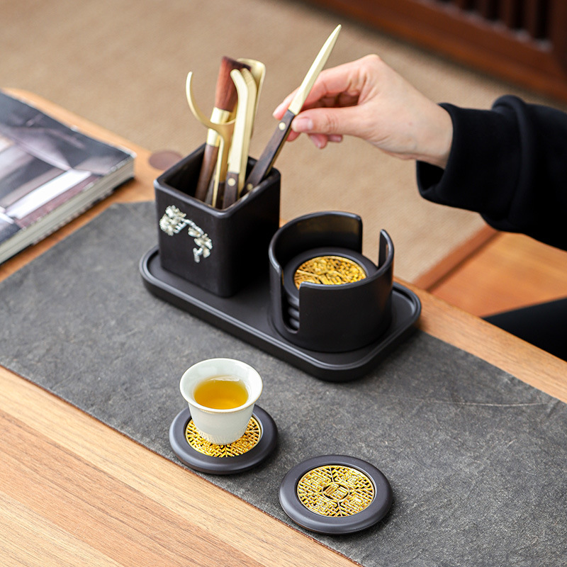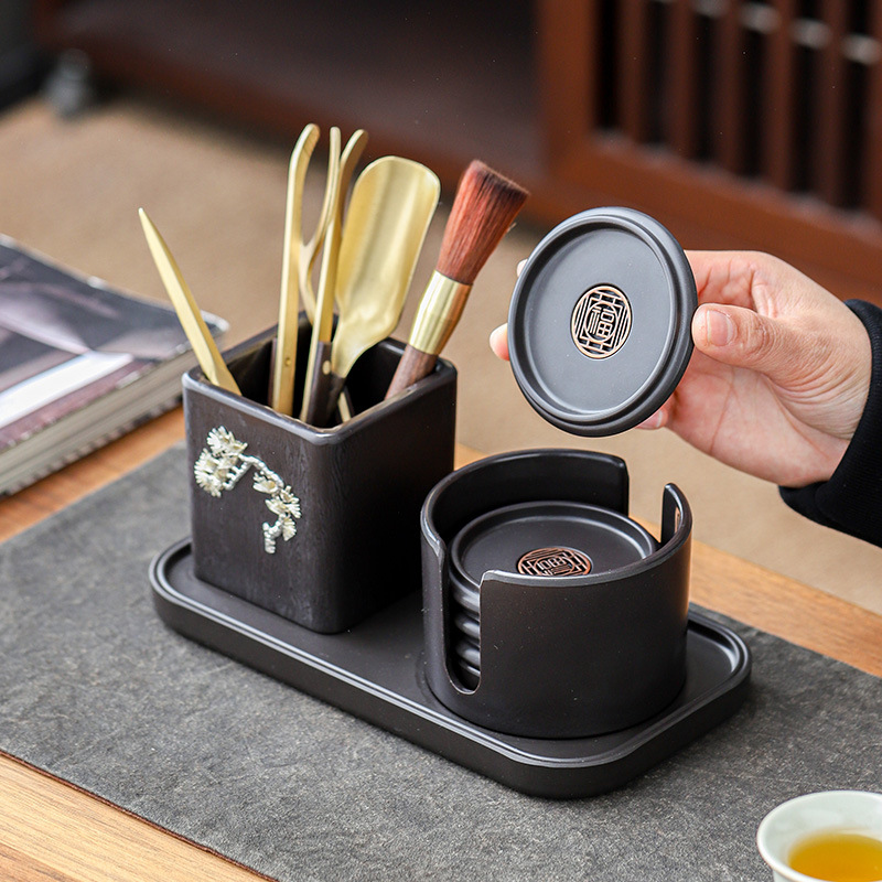 コースターセット茶道茶道茶道具部品お茶を入れる道具高級断熱防熱マット茶杯托六君子帯工夫