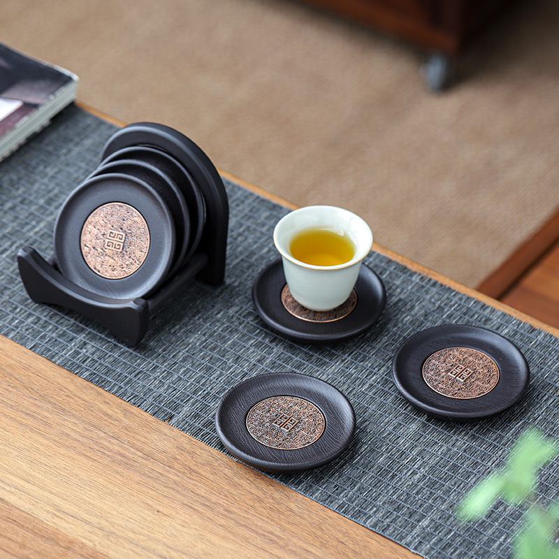 電木吸水セラミックカップマット断熱マット日本式創意工夫茶道茶器部品円形パーマ防止ティーカップホルダー