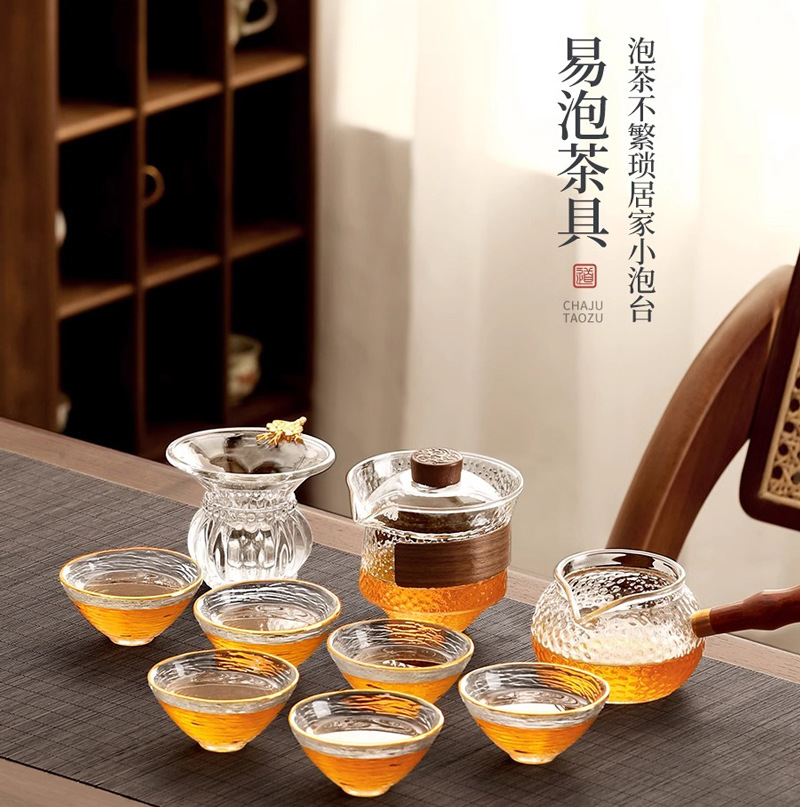 工夫茶器茶器ガラス茶器セット家庭用ティーポットカップ耐高温シンプルな茶器神器
