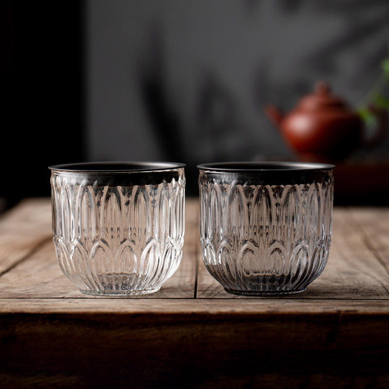 創意日本式ガラス建水蓋付き耐熱透明茶道蓄茶筒承水盆茶器部品