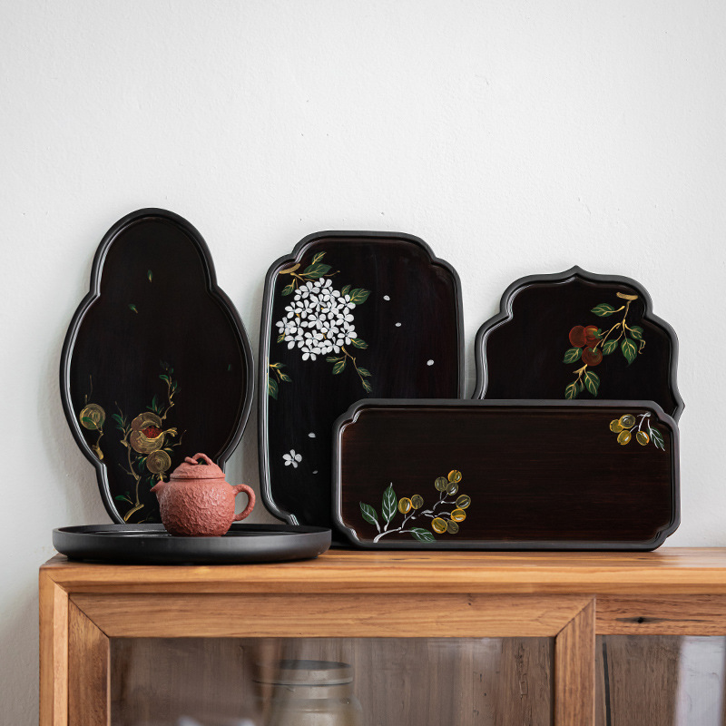 レトロな竹のトレーの円盤の工夫の茶器の小さいお茶の皿の手の手描きの国画の壺は乾泡台の小型の中国式を引き受けます。
