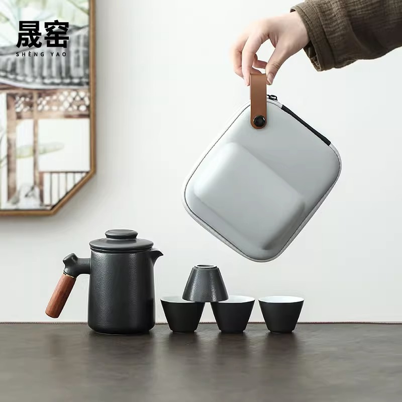 ポータブル旅行茶器小セットアウトドアキャンプファーストカップ一本四杯ティーポットお茶を飲む装備