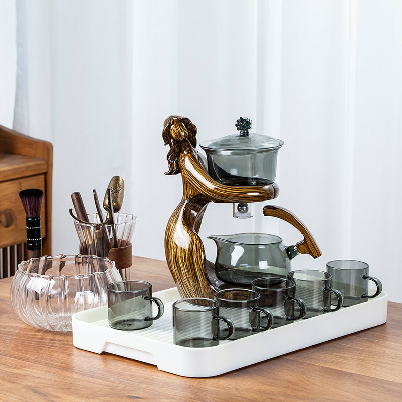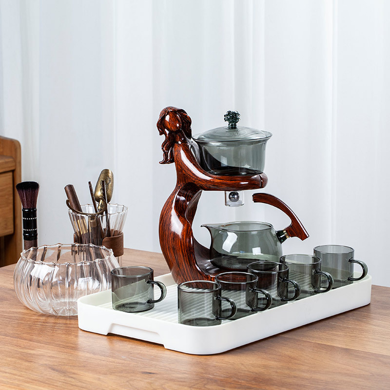 ガラスの怠け者の茶器のセットの家庭用の磁気は自動的にティーポットを浸します。