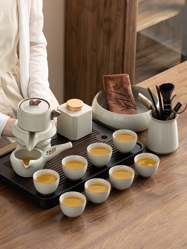 政汝窯怠け者の工夫茶器セット家庭用高級石臼自動泡茶神器ティーポット茶皿