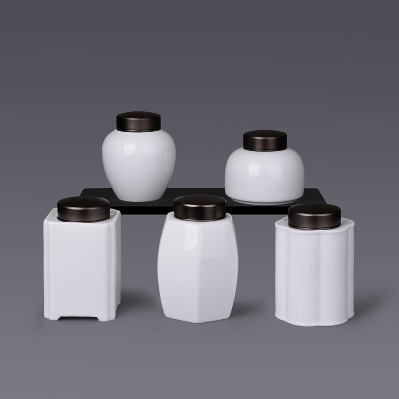 茶葉缶陶磁器密封缶防湿茶箱貯蔵缶錫蓋貯蔵缶白磁家庭用中号プーアル紅茶