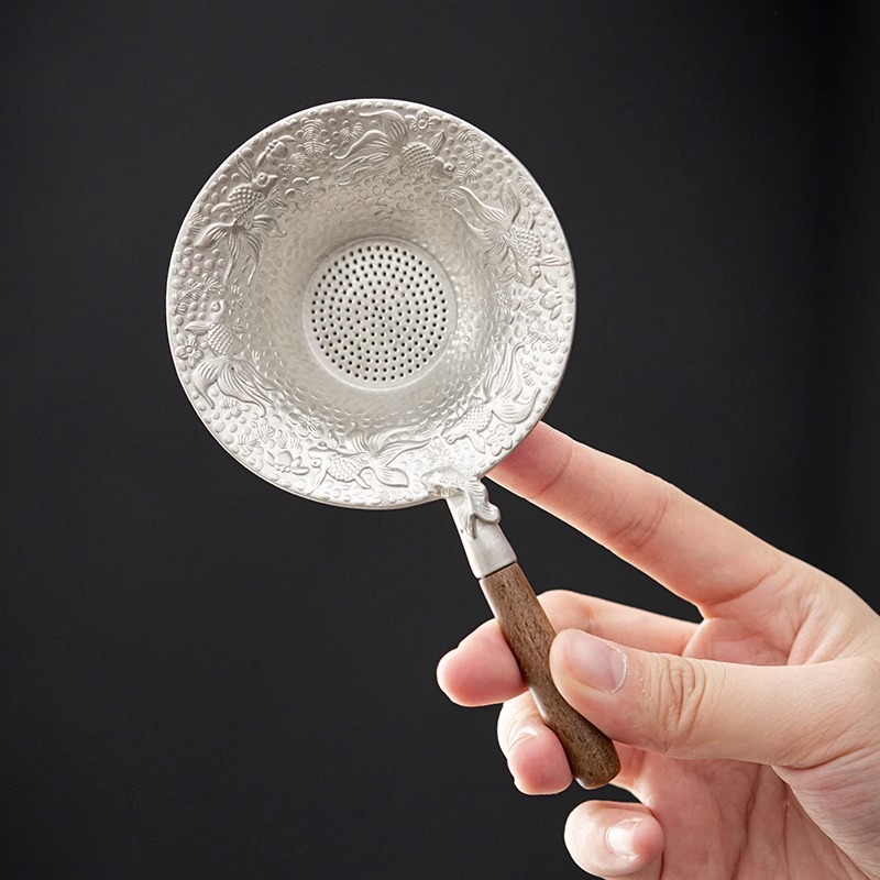 銀茶漏茶濾過黒檀木は錫茶漏フィルタ公道杯工夫茶器セット茶葉茶フィルタネット