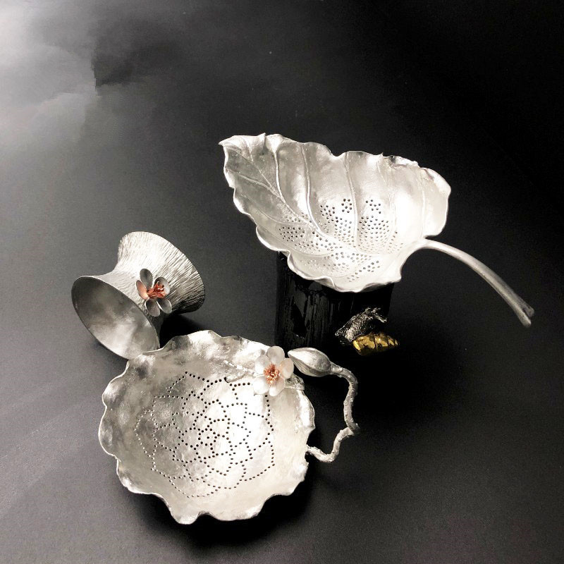 自分の手作業の純錫のお茶を探して、ハンマーの紋様を漏らします。