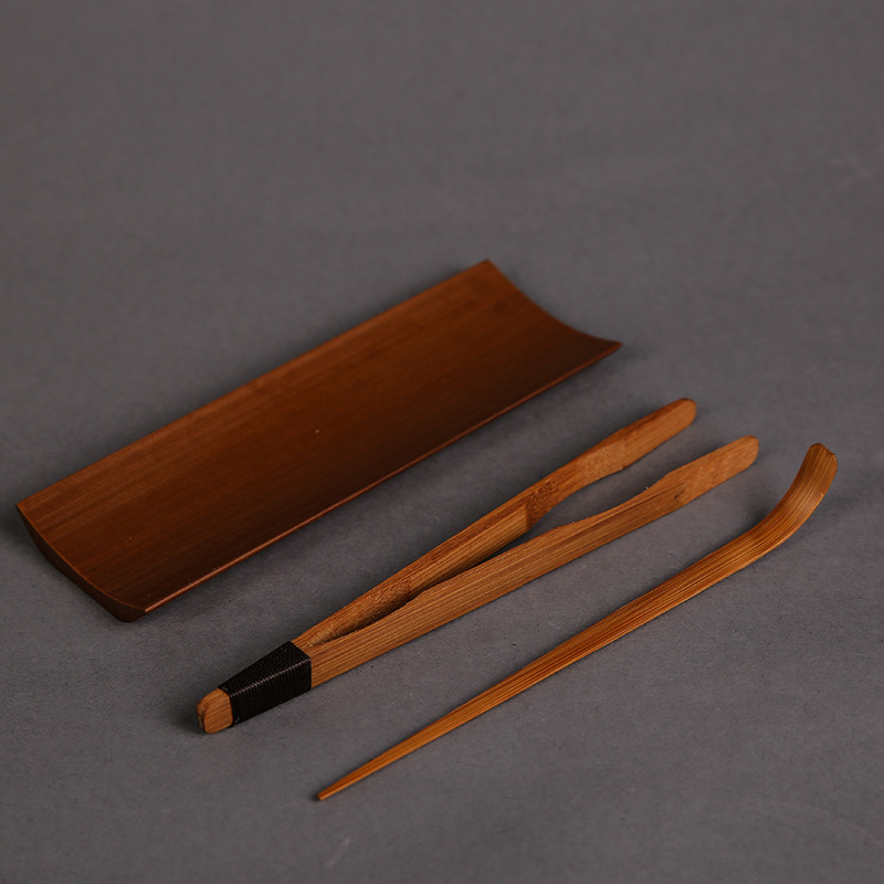 メーカー卸売り炭化竹製茶則茶クリップ茶針茶道六君子零配炭化三点セット茶器