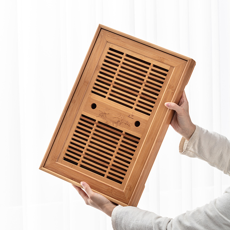 重竹茶皿家庭用シンプルな工夫茶道具茶台茶海和風竹製排水式茶トレー