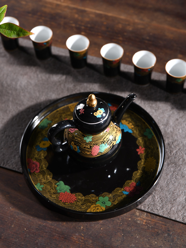 アウトドア旅行の工夫の茶器のセットは収納箱の陶磁器を持って携帯してお茶を入れます。