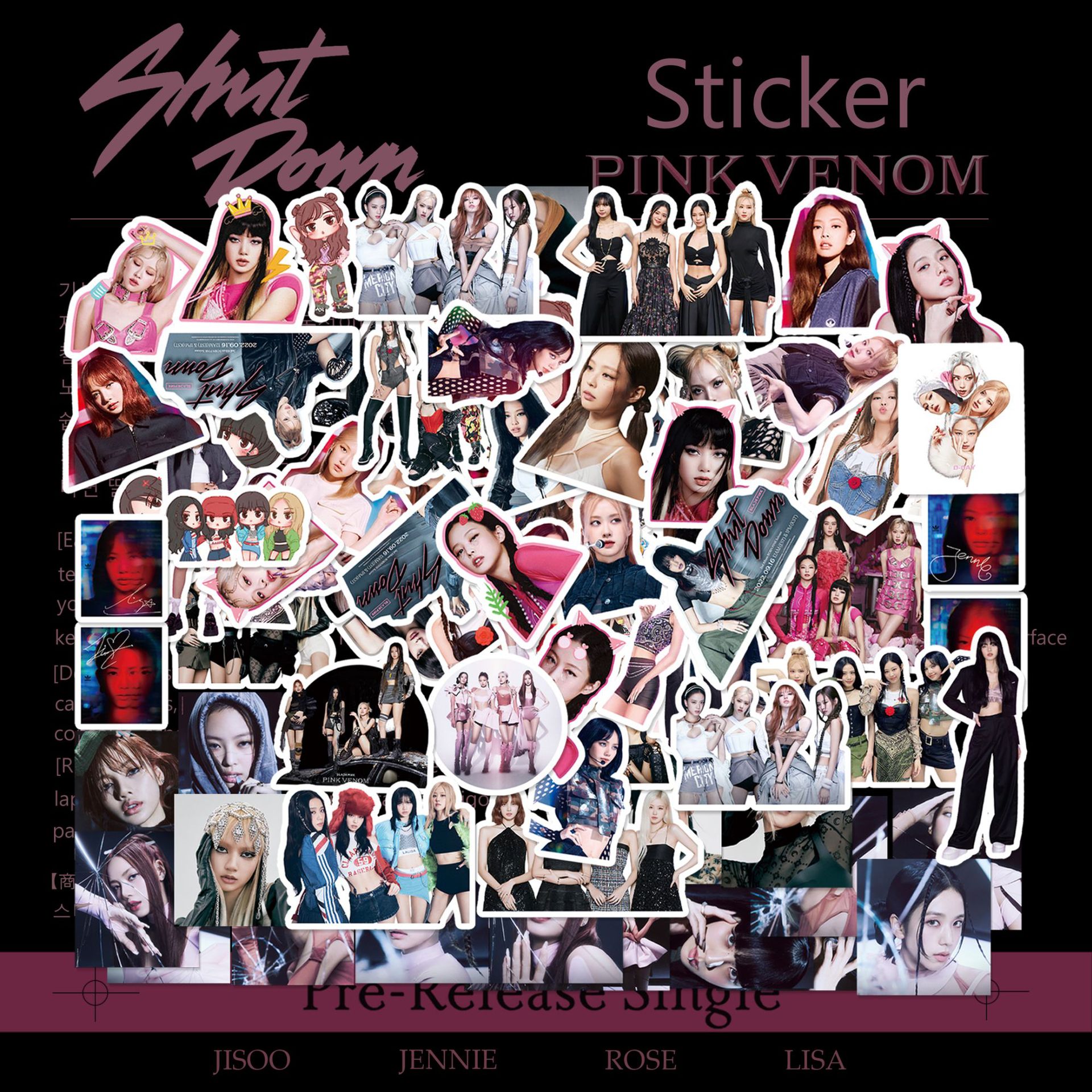 ブラックパウダーステッカージェインピンク手帳ステッカーローズJISOO智秀荷物93枚手帳