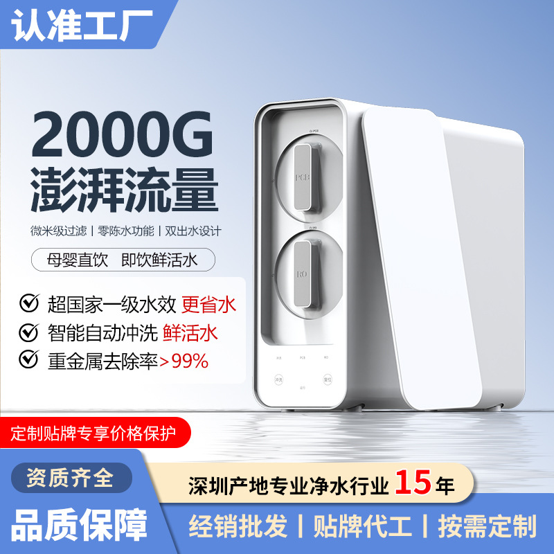 新型2000g大流量浄水器、キッチン下設置型フィルター、直飲み家庭用RO逆浸透純水機、業務用