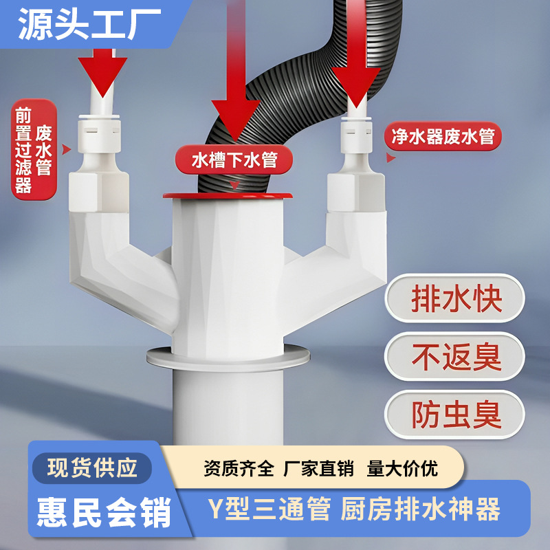 台所下水三方三合一水槽下水管三方継手防臭浄水器排水管汎用型