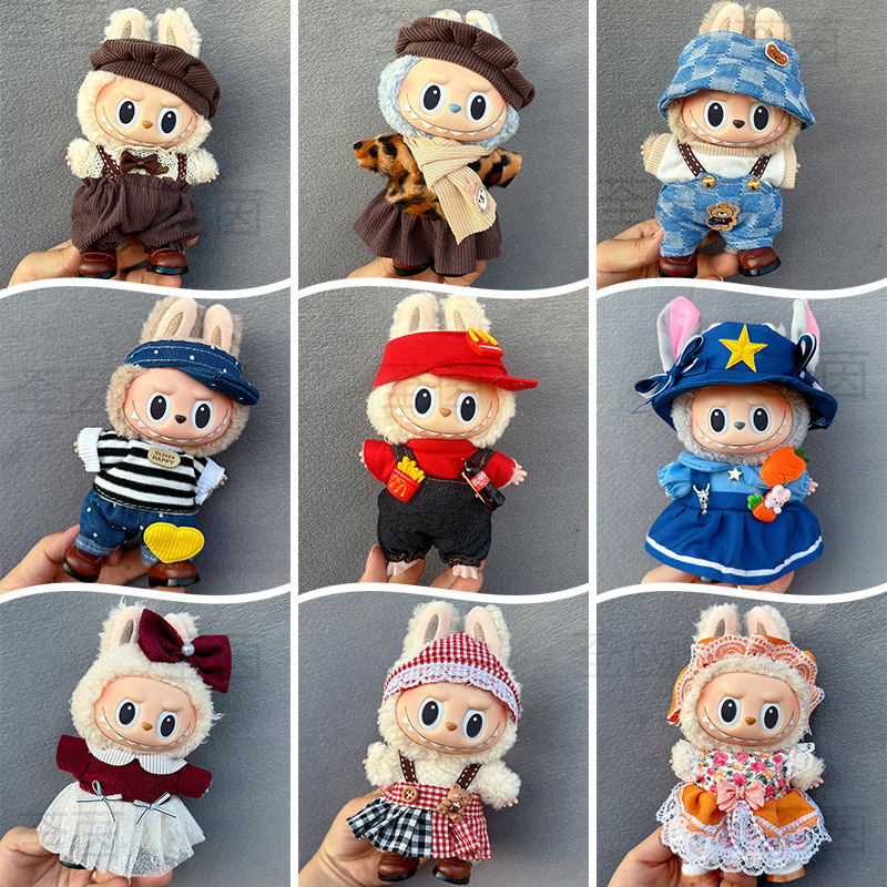 labubu 17cm シットパーティーベビー服第一世代と第二世代のぬいぐるみビニール顔服ラブブ