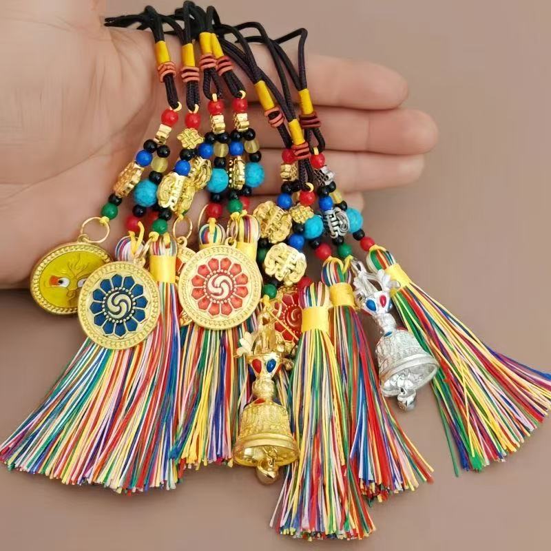 自動車の装飾の境の雲南の観光地区の同項のチベット式の五色の流蘇の五路の財神のカバンは縄を掛けて鈴を鳴らします。