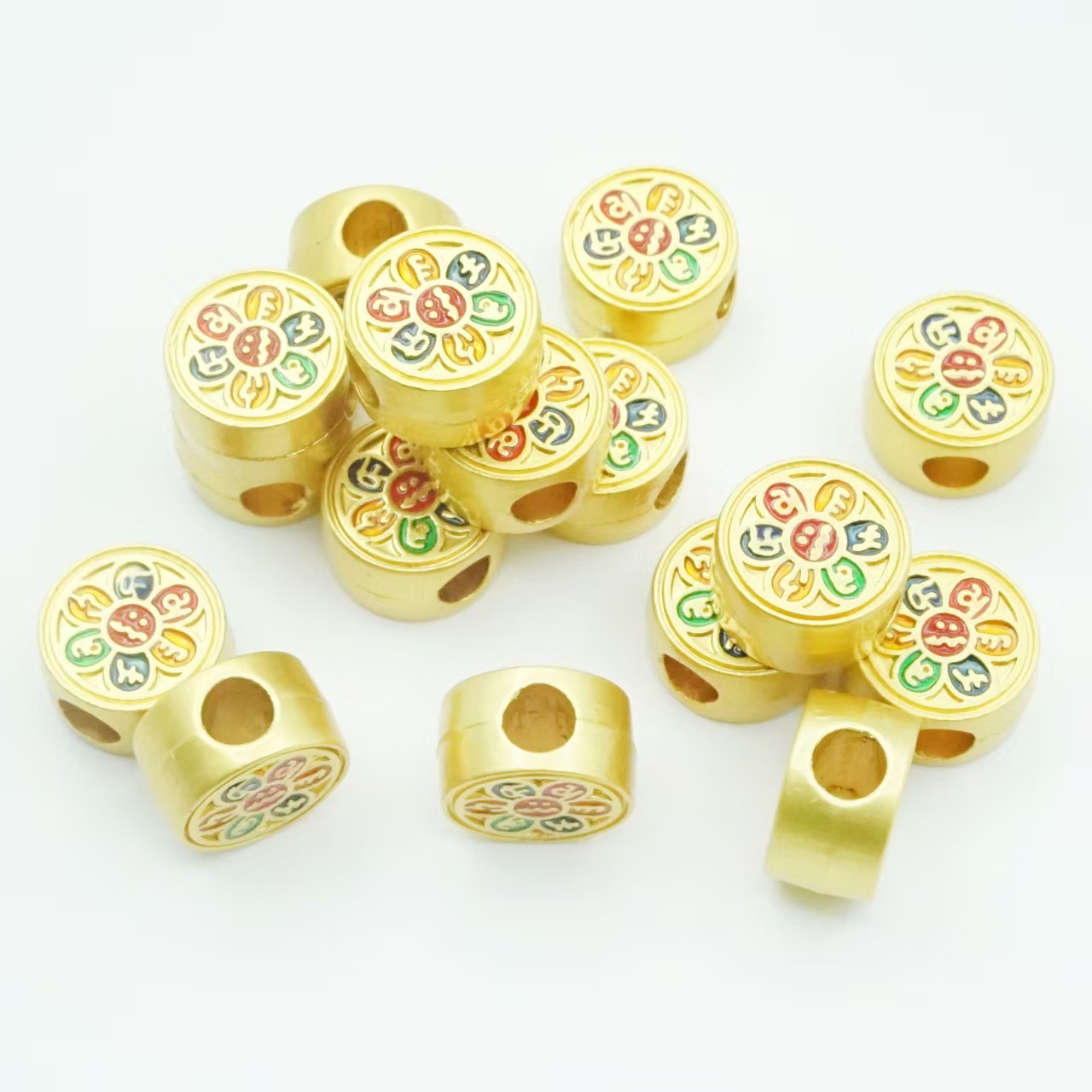 新しい diy 合金マットゴールド 6 文字マントラスルーホール幸運ビーズ手作りブレスレットキーホルダー