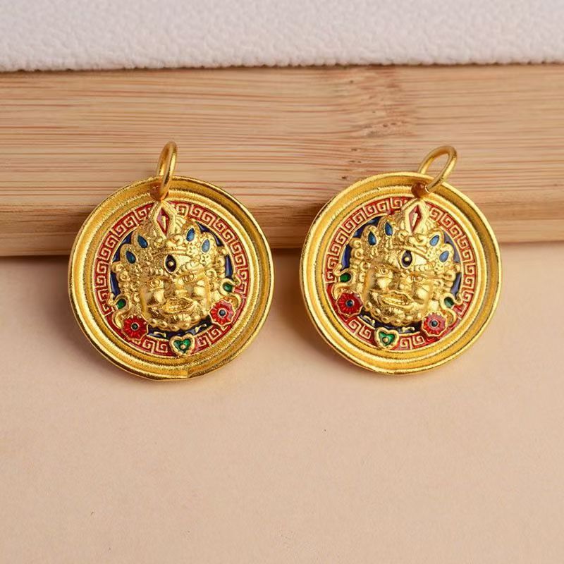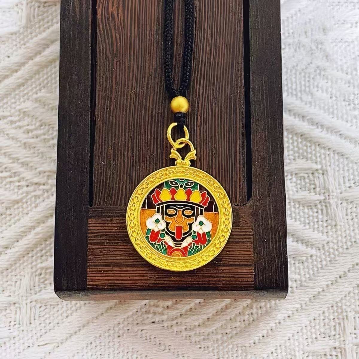 古法沙金エナメル彩黄財神円牌ペンダントチベット式ペンダントセーターチェーンネックレスアクセサリーストラップ男女モデル