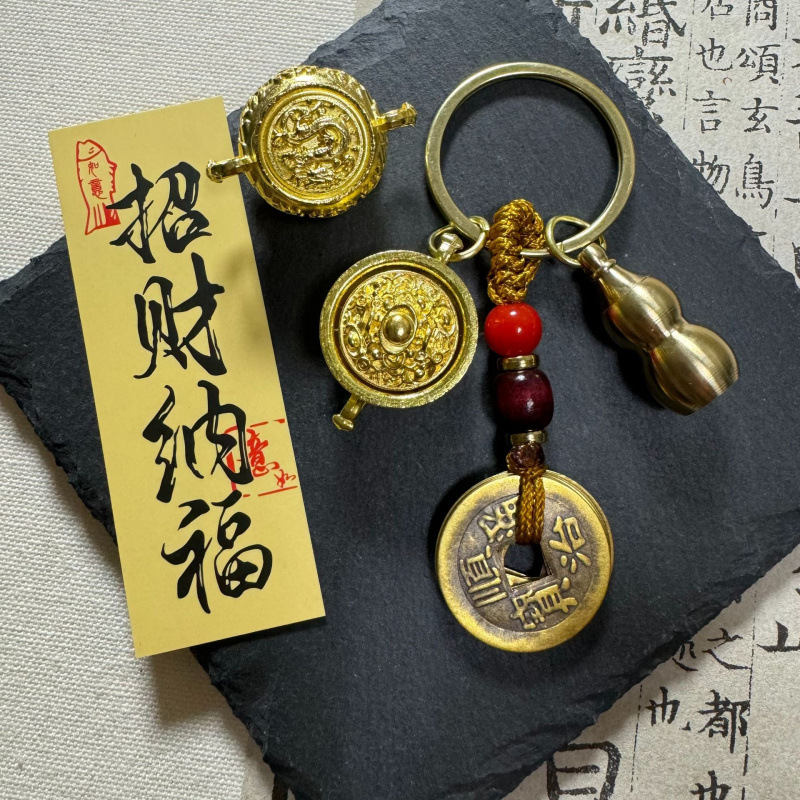 招財ハンドルの真鍮のキーホルダーは回転ペンダントができます。