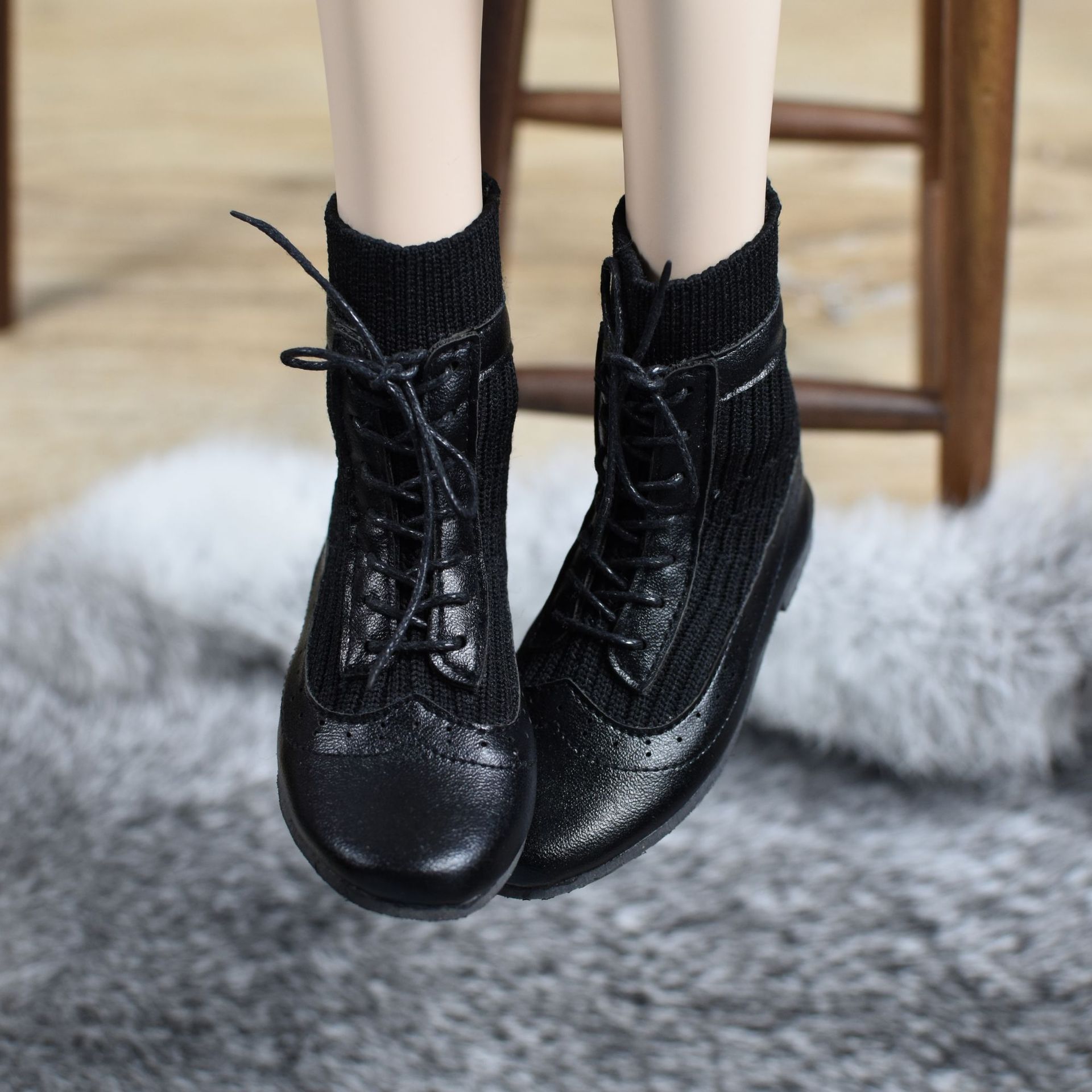 Bjd男靴黒短皮靴3分人形靴織面中助ショートブーツ (多サイズオプション)