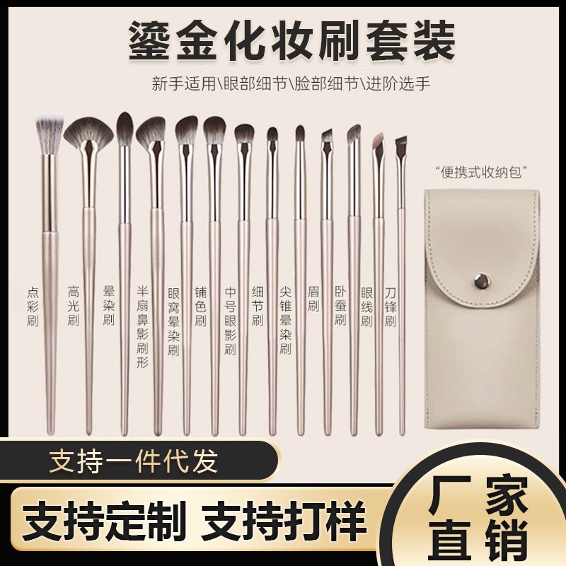 滄州 15 個金メッキ化粧ブラシセットアイシャドウブラシノーズシャドウブラシチークブラシルースパウダーブラシポータブル化粧ブラシセット