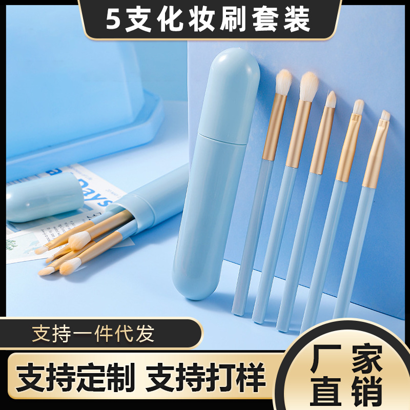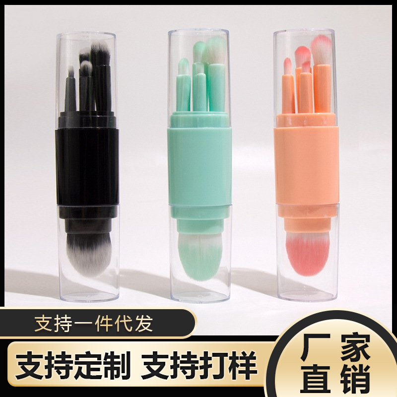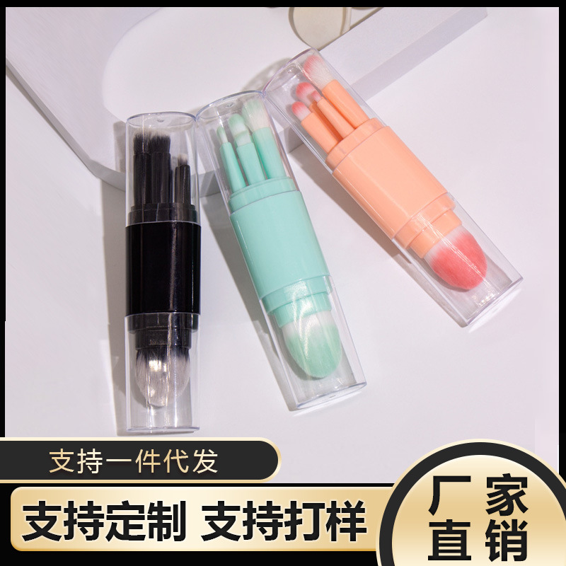 滄州五合一化粧ブラシセット携帯型ダブルヘッド蓋付き散粉ブラシアイシャドーブラシ多機能旅行美化粧