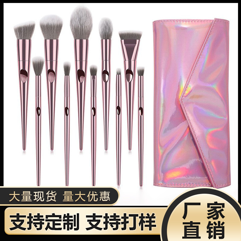 10本のピンクの指紋の化粧ブラシのセットのアイシャドーのブラシのブラッシュのブラシのセットのブラシの化粧品のツールの現物の卸売り