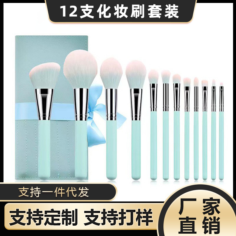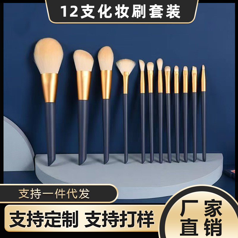 新商品12本受狼ブルー化粧ブラシセットソフト毛散粉ブラシファンデーションブラシアイシャドーブラシ美化粧ツール