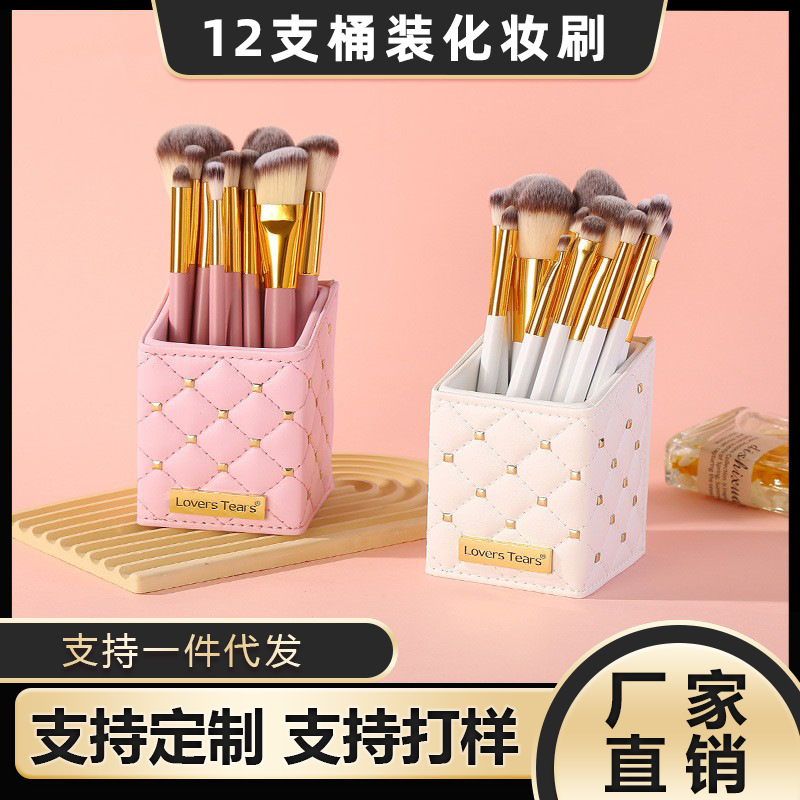 国境を越えた12本のバケツ入り化粧ブラシセットは、ピンクの頬紅アイシャドーを塗って、ファンデーションブラシの化粧道具卸売りメーカーを修理する