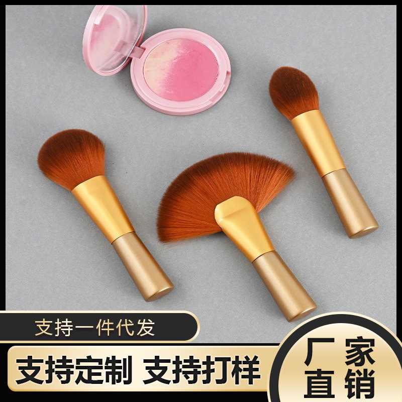 国境を越えた熱売金の大きい扇形の化粧ブラシの輪郭ブラシの扇風機はシャンパンの色の粉の頬紅の蜜の粉のメーカーの卸売りを塗ります。