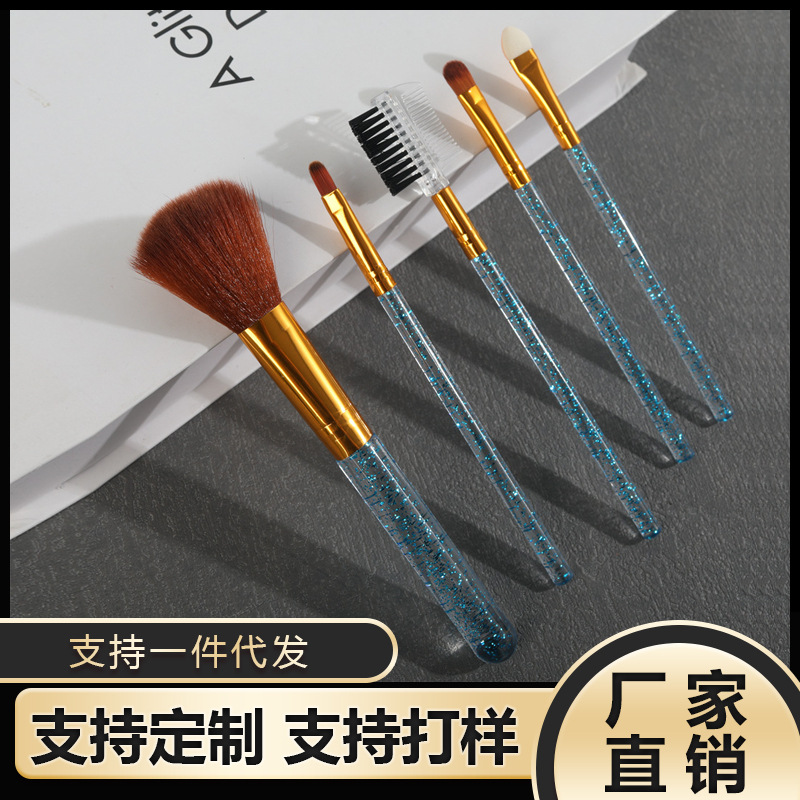 化粧ブラシセット5本セット水晶ロングハンドル化粧ブラシセット多機能化粧ブラシ